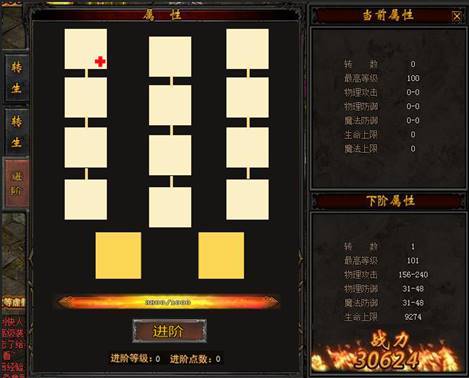 那么如何来升阶呢?很简单,只需通过进阶丹来增加进阶经验条,当经验条满时电击进阶按钮,即可提升1级进阶等级和获得1点进阶点数。
