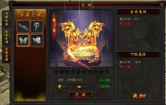 15转后并且达成觉醒1阶即可开放觉醒圣器。