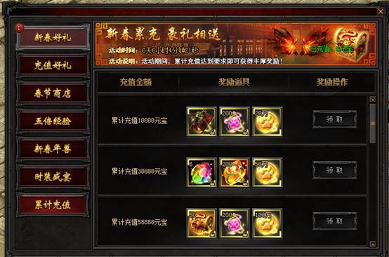规则:活动期间,玩家每日充值达标可领取奖励,每日重置