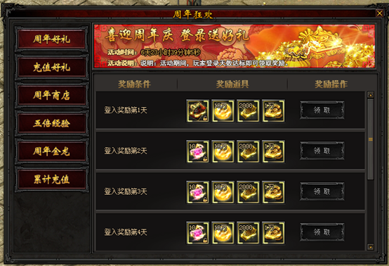 规则:活动期间,玩家每日充值达标可领取奖励,每日重置