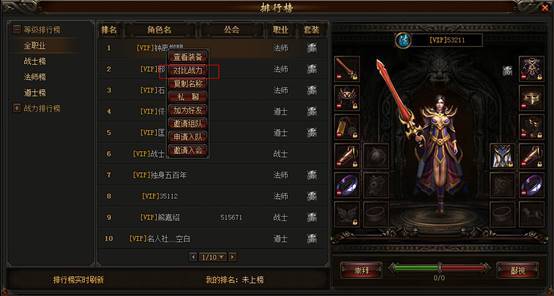 “我居然未上榜,这怎么办”,不要急,点击排行榜上角色的名字,就可以看到“对比战力”选项,