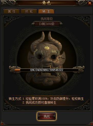 点击“挑战”进入转生副本,挑战心魔,只有在规定时间内击败心魔,才能进行转生。