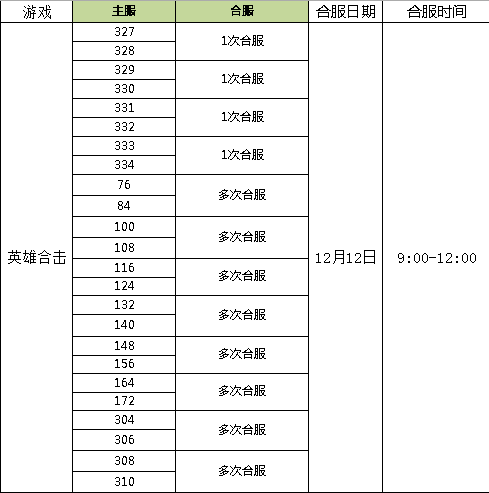 《英雄合击》12月12日合服公告2019-12-11 15:40:07