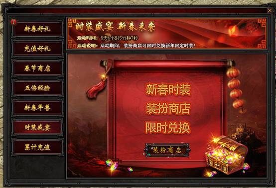 规则:活动期间,装扮商城限时兑换新年限定时装