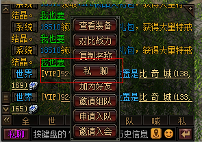 如果想跟玩家私聊,需要点击此玩家的角色名,然后选择私聊,