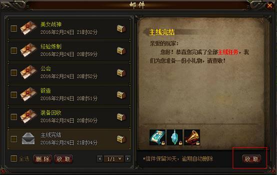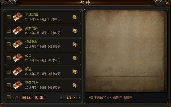 《传奇荣耀》邮件系统