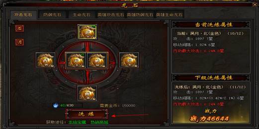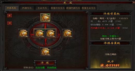 龙石星级:龙石可通过洗练获得星级,每个种类龙石都有总星级套装效果