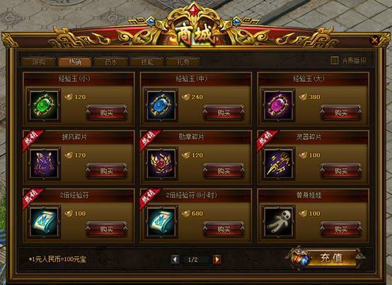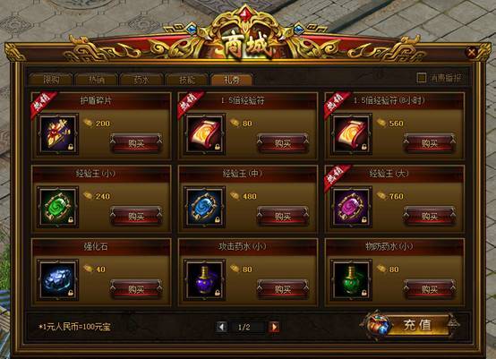 药水商城中出售的是有时效性的辅助道具,打宝PK必备良药,